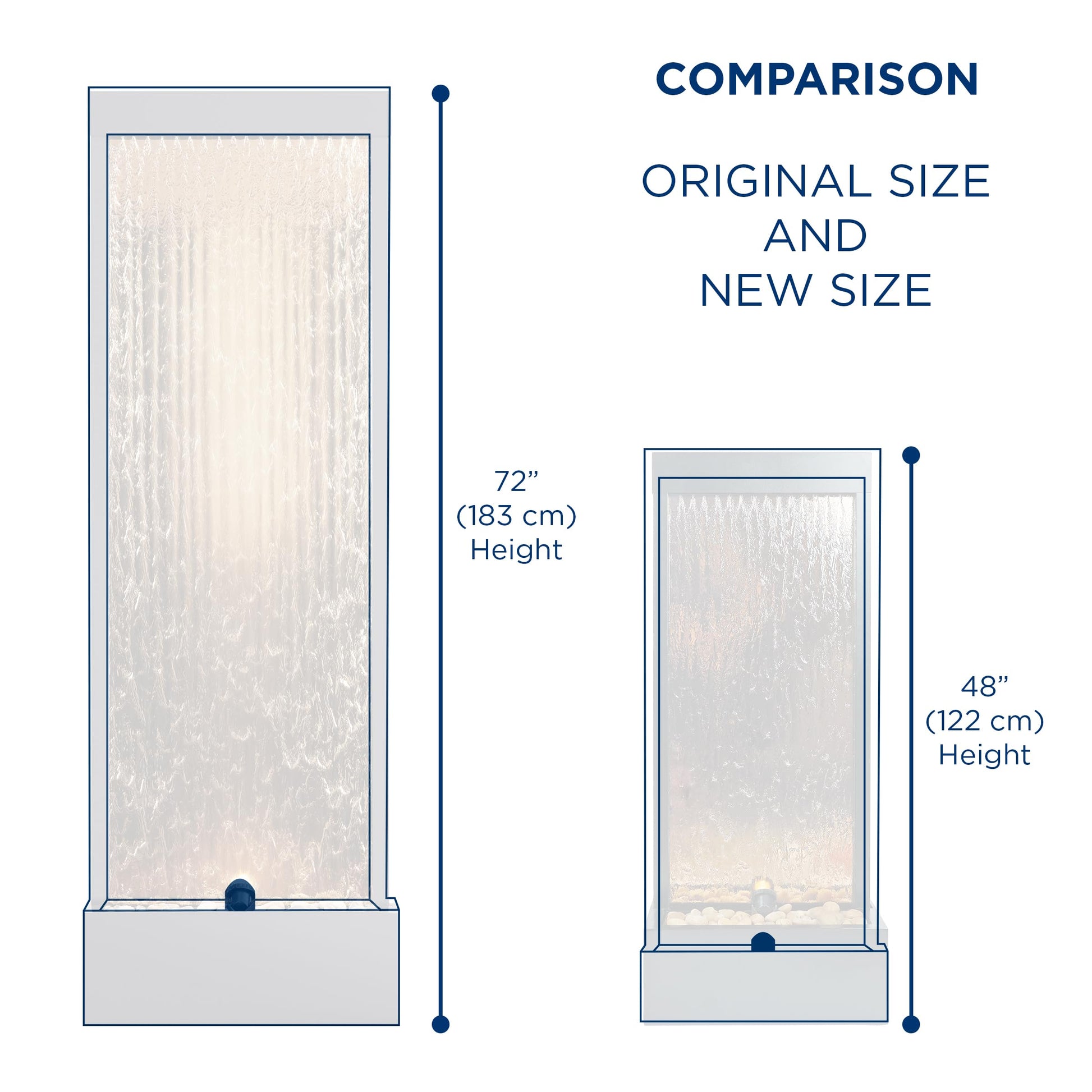 Details: The Alpine Corporation Mirror Waterfall Fountain with Stones and Lights is the ideal addition to any home or office, offering a serene and sophisticated focal point. This modern, Zen-inspired water feature creates a tranquil ambiance with the soothing sound of cascading water. Whether you place it indoors or outdoors, the design and natural stone accents blend seamlessly with any décor style, from contemporary to rustic. Standing at 72 inches tall, this fountain makes a striking statement in your living room, patio, or entryway. Its reflective mirror surface catches and reflects light, creating an elegant and calming visual. The water flows gently from the top of the mirror and cascades down into a bed of natural river rocks, mimicking the sound of a gentle waterfall and offering a peaceful, spa-like experience. One of the standout features of this fountain is the integrated halogen lighting. The light shines directly onto the waterfall, illuminating the water flow and creating a soft glow that enhances the relaxing ambiance of your space, especially in low-light conditions. This lighting feature not only highlights the beauty of the fountain but also adds a soft, ambient light to the room or patio. Durability is another key advantage of this product. Constructed from high-quality materials, it’s built to last through both indoor and outdoor use. The Alpine Mirror Waterfall Fountain stands out from similar products with its perfect combination of design, ease of use, and quality construction. The sleek and modern look, paired with natural stone accents, makes it a versatile and attractive addition to any décor. Plus, with a 2-year manufacturer’s warranty, you can trust that this fountain is built to provide years of enjoyment. Whether you’re looking to add a calming feature to your office or elevate your patio’s ambiance, the Alpine Mirror Waterfall Fountain is the perfect choice for creating a peaceful and stylish environment.