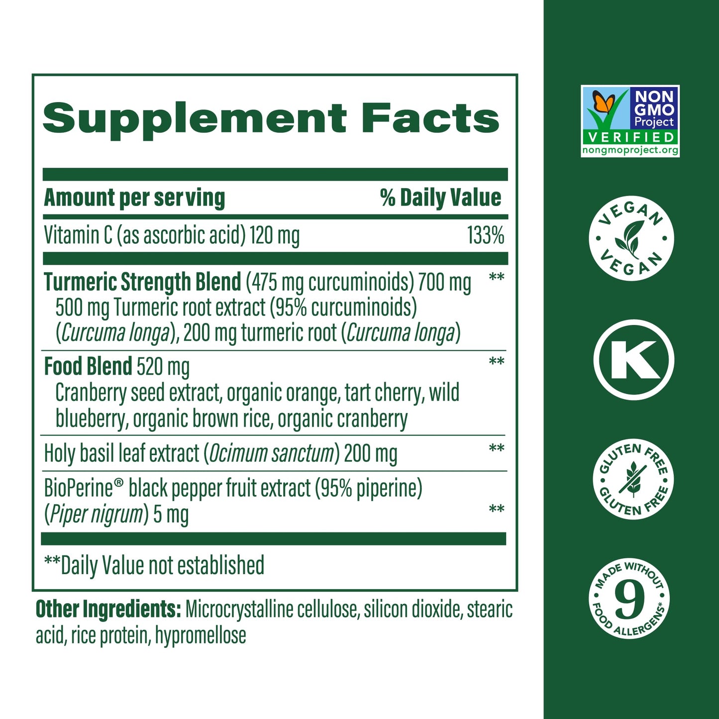 MegaFood Turmeric Curcumin Extra Strength - Whole Body - Turmeric Curcumin with Black Pepper - 475mg Curcuminoids - Holy Basil, Tart Cherry - Made Without 9 Food Allergens - 120 Tabs (60 Servings)